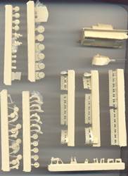 halves were well-aligned. The resin tracks come as pre-assembled sections, four per side. I like this, as the thought of having to bend resin tracks by heating them has always scared me sheetless. The tracks are not too bad what the level of detail is concerned, but suffer from too many blemishes and aren't always perfectly pre-assembled straight. I found