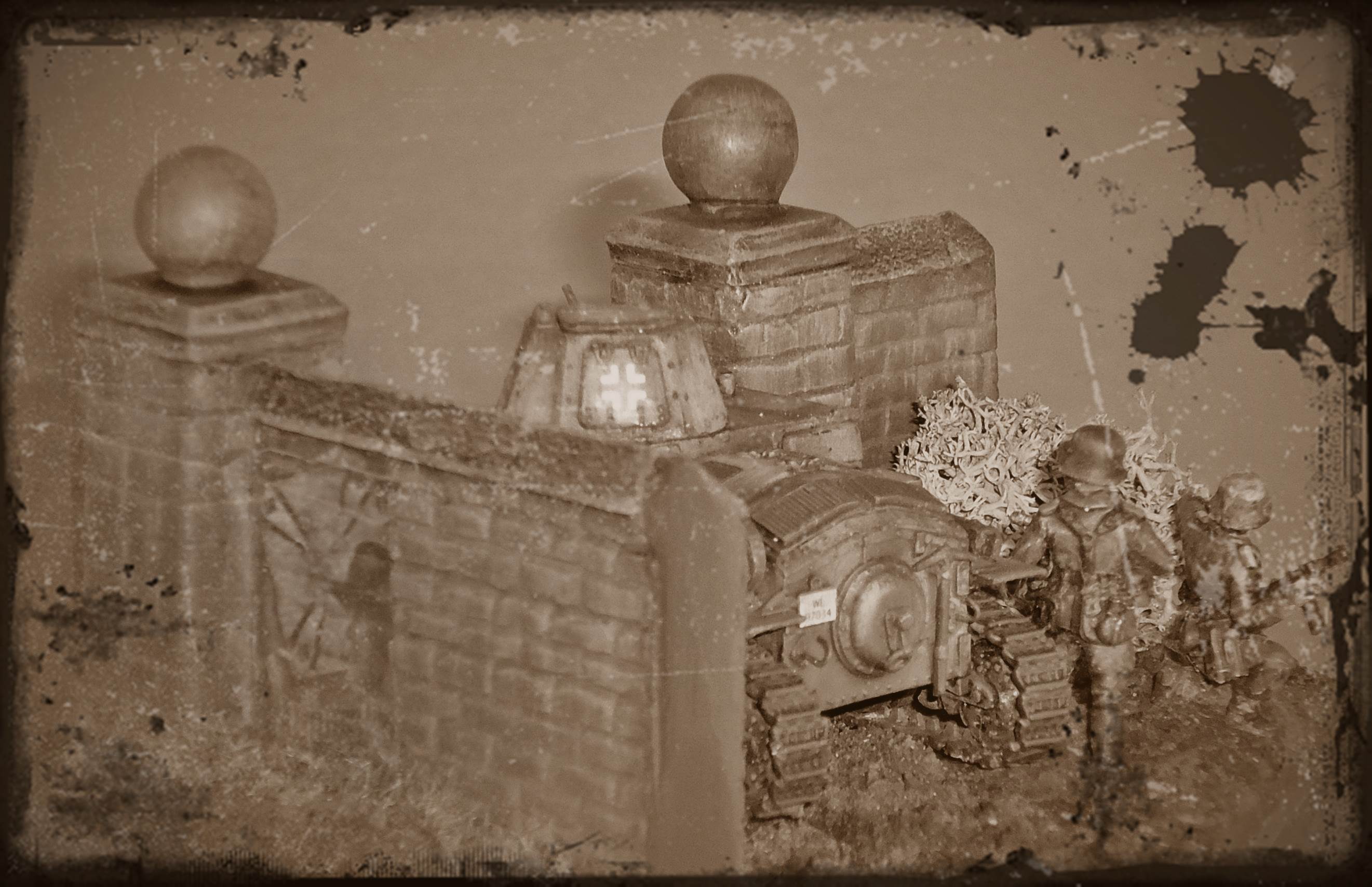 but is otherwise solid and cast integrally with the gun. The manual mentions the use of metal rod to make a tow hook and foot steps. As I understand it, this metal rod should be included, but it wasn't. I used some brass rod I had lying around. It seems I have not positioned the front tow hooks correctly as they should be higher up the hull. I might also have missed a towing eye on the nose of the kit. At this point I compared the look of the kit with the limited references I had. Not having any scale drawings that I could truest for the full 100%, I mainly looked at pictures and compared them with the kit. It seems the look of the vehicle has been captured well. I chose to represent a German vehicle and painted it as such. It is difficult to tell from the pictures I have seen whether the return rollers had rubber tyres or not. As the kit comes without decals, I dove into my spares box and used Balkenkreuze from an old 1/76 Fujimi PzKpfw38(t) (which 6 years after finishing the kit had become gooey). The licence plates came from Decal Details MI-109, which incidentally also has Italian markings.