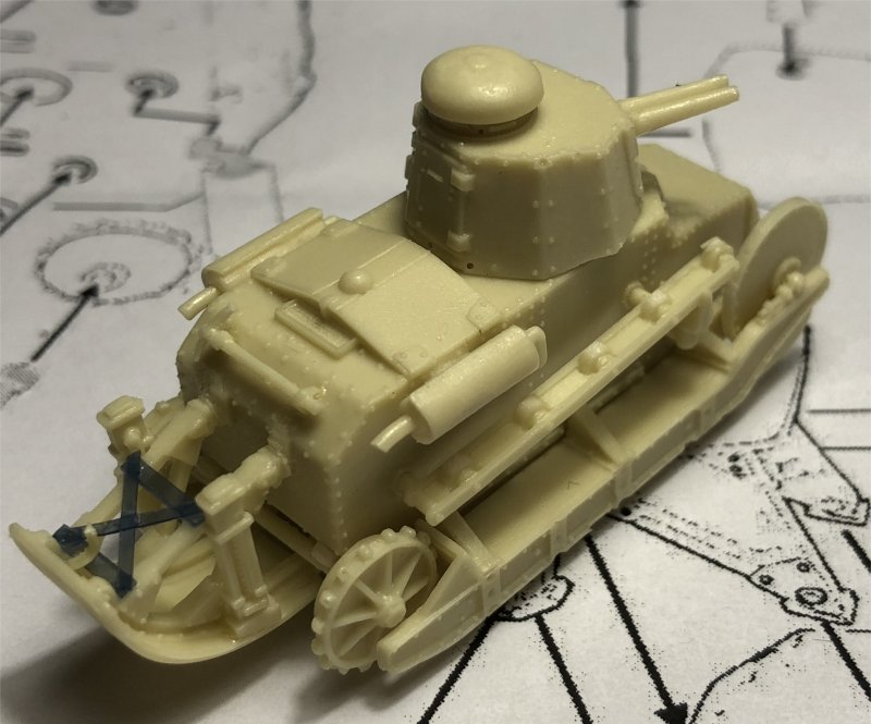 - I went for the later version of the turret (with the cylindrical FIAT 14/35 machine guns), so I did not bother with straightening the earlier SIA mod. 18 machine guns, which are very nice but definitely bent and difficult to detach from the resin block.
