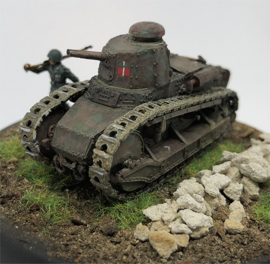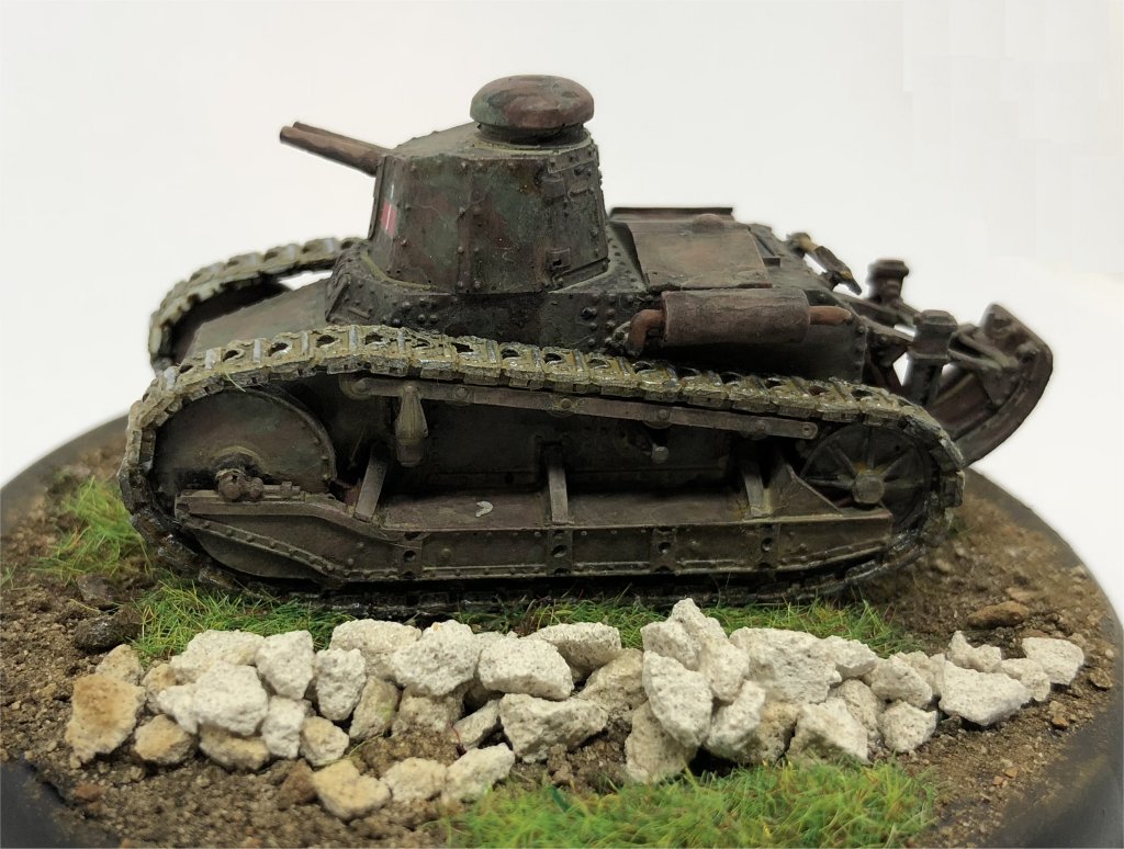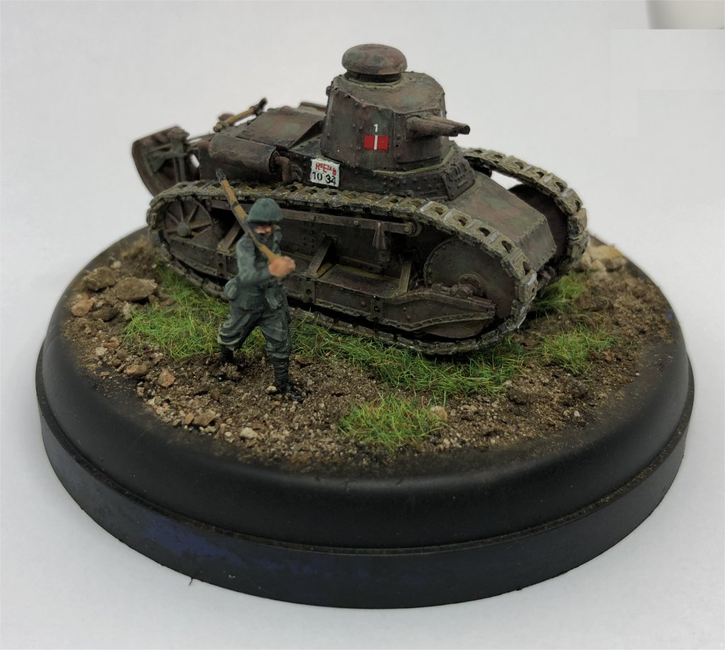 This article has all the information needed to finish a model of the FIAT 3000. This vehicle was operating in Sicily, 1943, during the Allied landing, so it was painted in dark green spots FS14036 on a red brown FS30109 base. The license plate and markings come from Italeri M13/40 fast-build kit. The FIAT 3000s operating in Sicily were very clean (they had been inspected by the King of Italy during an official visit some months earlier !), so weathering is minimal. The figure comes from the Italian Infantry by Airfix.