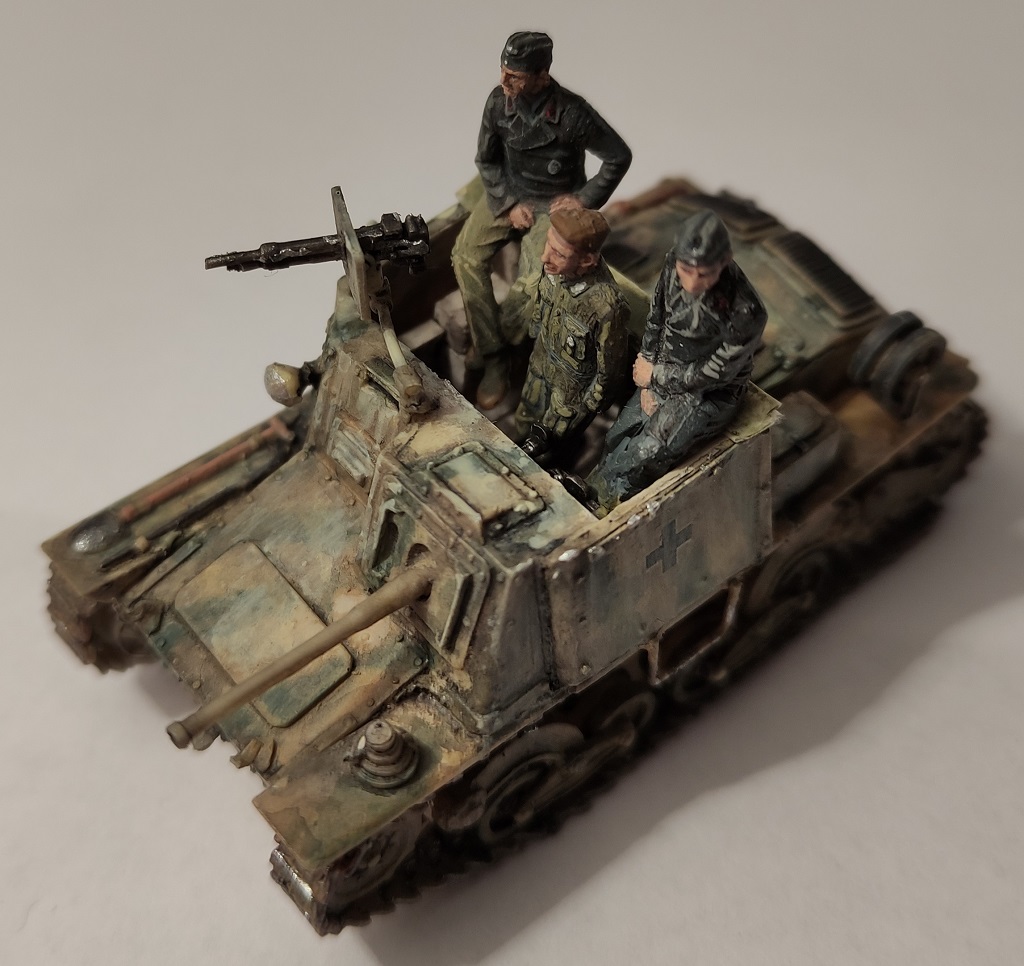 Finishing the model The vehicles entered service with the Wehrmacht in late 1943 and remained operative for less than 2 years. They were re-painted in the usual German sand, with green stripes of different sizes and directions, in some cases air sprayed and in others hand-painted. Most of them had two German crosses on the side, a few had numbers but nothing else. The vehicles looked rather clean (probably they never saw much action), with no extra stowage. Keeping this in mind, the kit was painted and weathered accordingly. The three figures of the crew have relaxed poses, as it can be seen in the rather few photos of the vehicles in service. Thanks to Giorgio Brigà (GB Modelli) for the review sample.