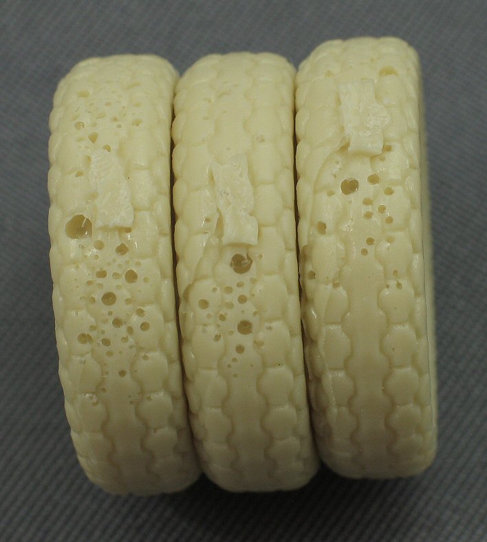 The tire profile on the wheels is nicely reproduced, however each wheel has a concentration of air bubbles near the pouring block which spoils the fun somewhat. |