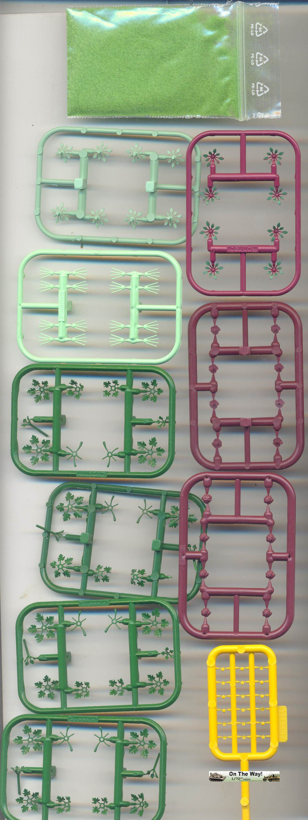 The detail on the set is nice, but the perfect symmetry and monotone (shiny) colors will need some attention to make the end-result convincing. The overall size seems to be to scale, but leaf thickness is overdone due to molding limitations.