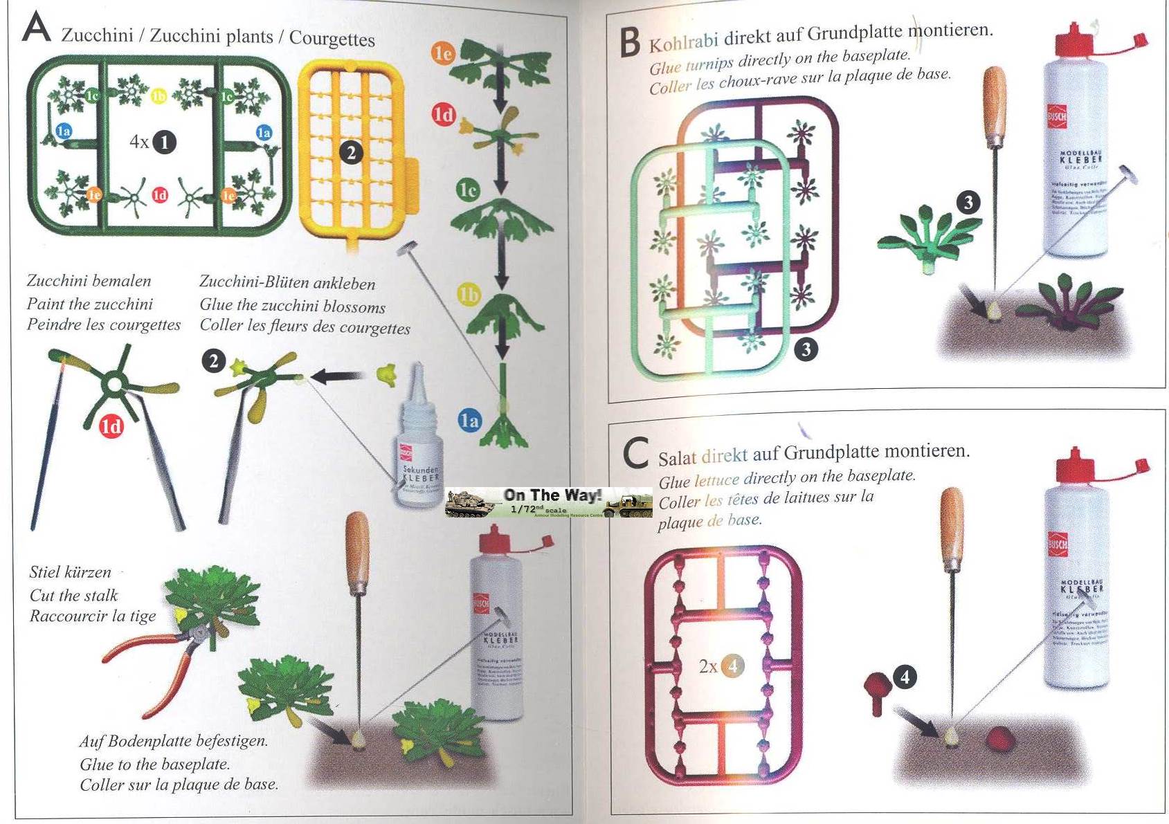 - the zucchini plants have 6 pieces each, and need to be glued and painted.