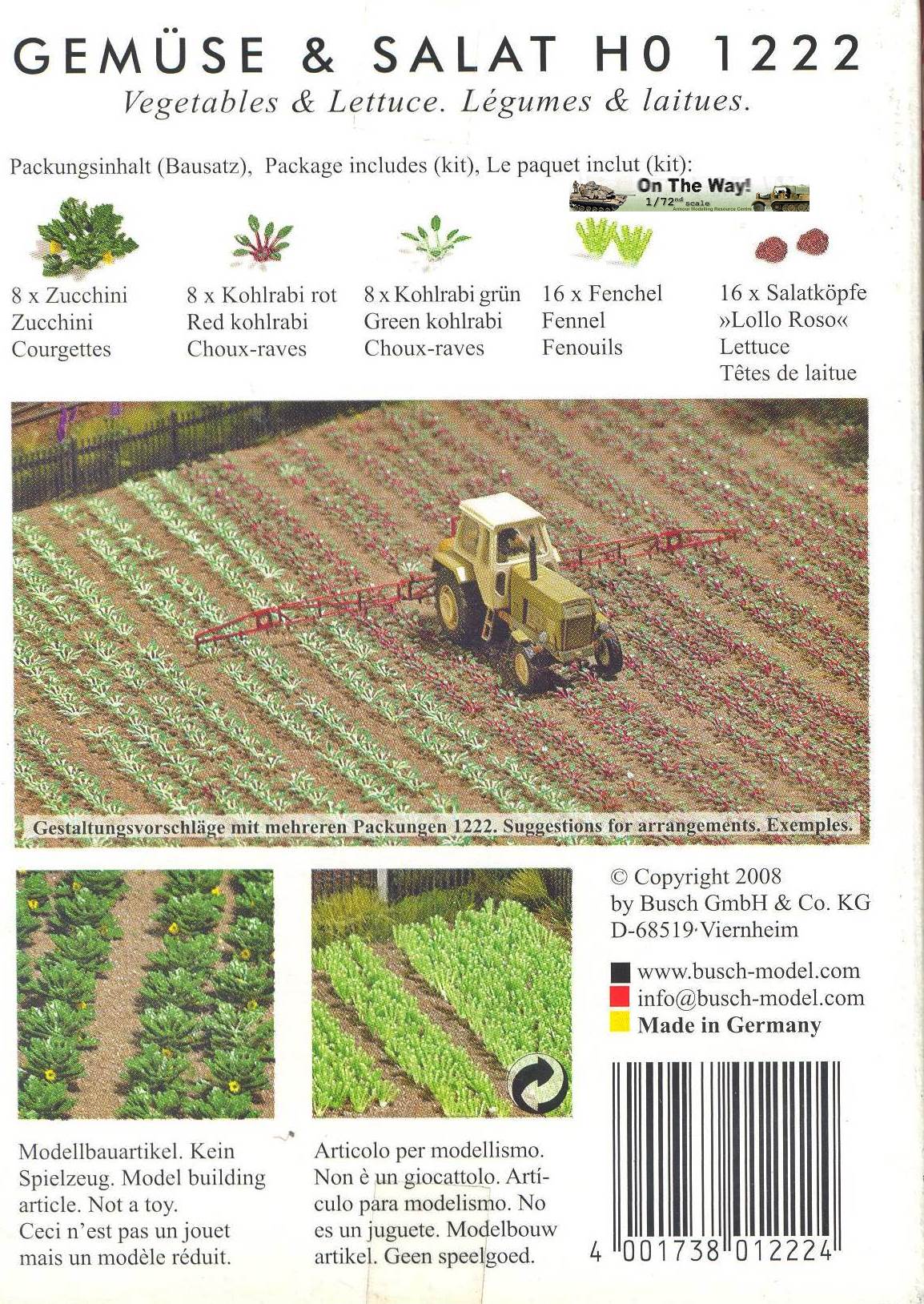 The set provides items for a typical (?) vegetable garden: zucchinis (8 of them, in multiple parts), kohlrabi (16 of them in two colors), red lettuce (16), fennel (16 in total).