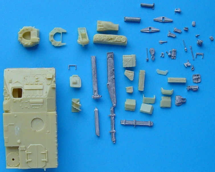 This conversion set from CMSC allows you to build a FV512 the Warrior Mechanised Combat Repair Vehicle. Everything is moulded to the usual CMSC standard i.e very good, my kit just had the one blemish, unfortunately on the upper hull, it was both slightly warped and slight flaking on the top. Everything is included in the kit, including the crane controls in the upper hull, all the wheel locks are included. One thing I really like about CMSC mouldings are the lack of pour blocks to be removed from the parts, it certainly eases construction in my mind.