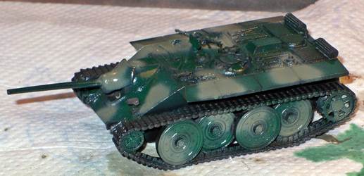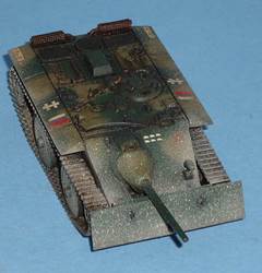 the track pins and track face detail. 5. Personal touch As I noticed there was a rather prominent gap below the gun mantlet (in the design, not just in the kit), I decided to add some spaced Vorpanzer made from plasticard and metal rods. I added two layers, the front layer also giving some protection to the tracks. 6. Painting and marking options No painting/marking options or decals are provided. Then again, the vehicle was never built, so let your imagination run wild. I mixed some colors together, and added Slovak decals from Aleran's AX-2 (Axis Minors) set.