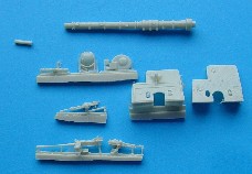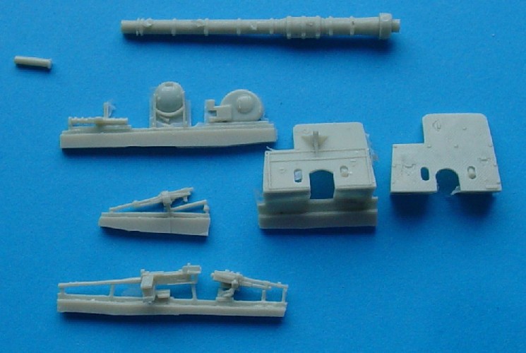 The turret is molded as one piece, with the tow ropes molded very finely in place with just some small "sprues" to remove between the turret.As with the Merkava all of the parts are for the turret, with the commanders and loaders hatches, the 60mm mortar and the MAGs and the .50 cal for above the main gun. Two different types of armour for the Mantlet are provided, one with a .50 cal fitting and one without, as not all Magachs have them fitted, the main gun has the MRS mirror at the end and thermal jacket. The turret is based on the Revell kit and as such as in the kit the main gun doesn't move in elevation. The add on armour for the mantlet without the .50 cal mount has a very fine texture to it, as can be seen in the comparison below this is also present on the real vehicle, however it will take careful painting to bring this texture out.