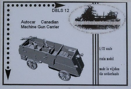 This 1/72 kit represents a Canadian Armoured Autocar used by the 1st Canadian Motor Machinegun Brigade during the First World War.