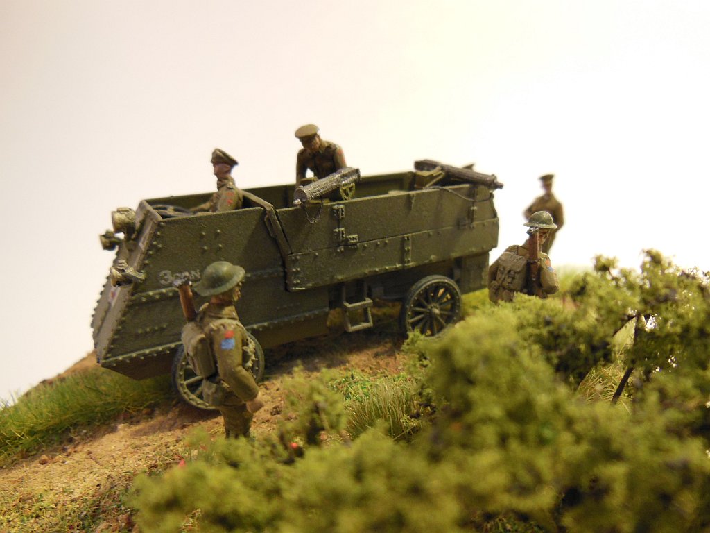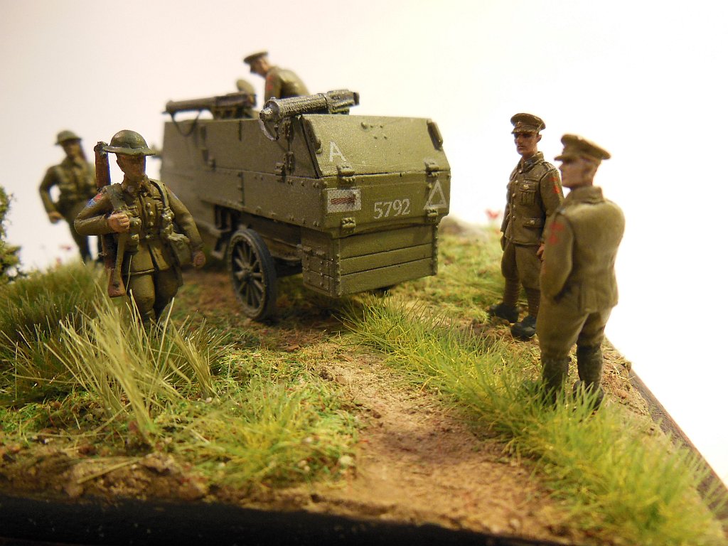 The figures are from the excellent W∧D models range. They are a combination of WD9 - British Infantry (walking), WD19 - British Driver/Passenger, WD2 - Light Railway Crew, and WD4 - Gun Crew.