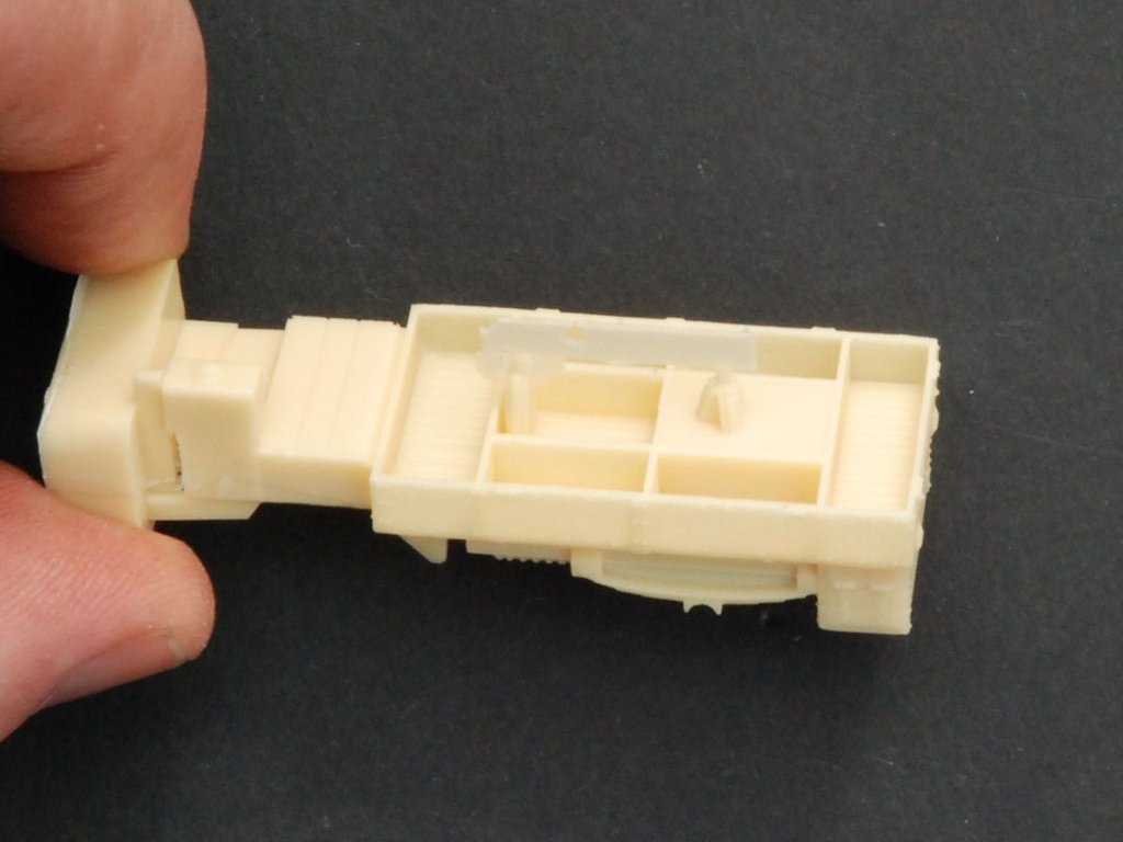 Both the armoured hull and the main chassis have large mold blocks that need to be removed and sanded.