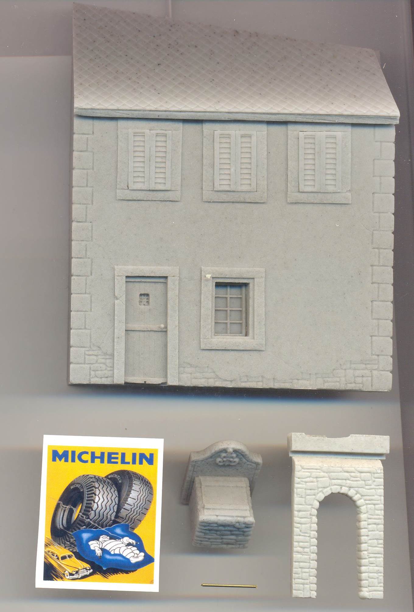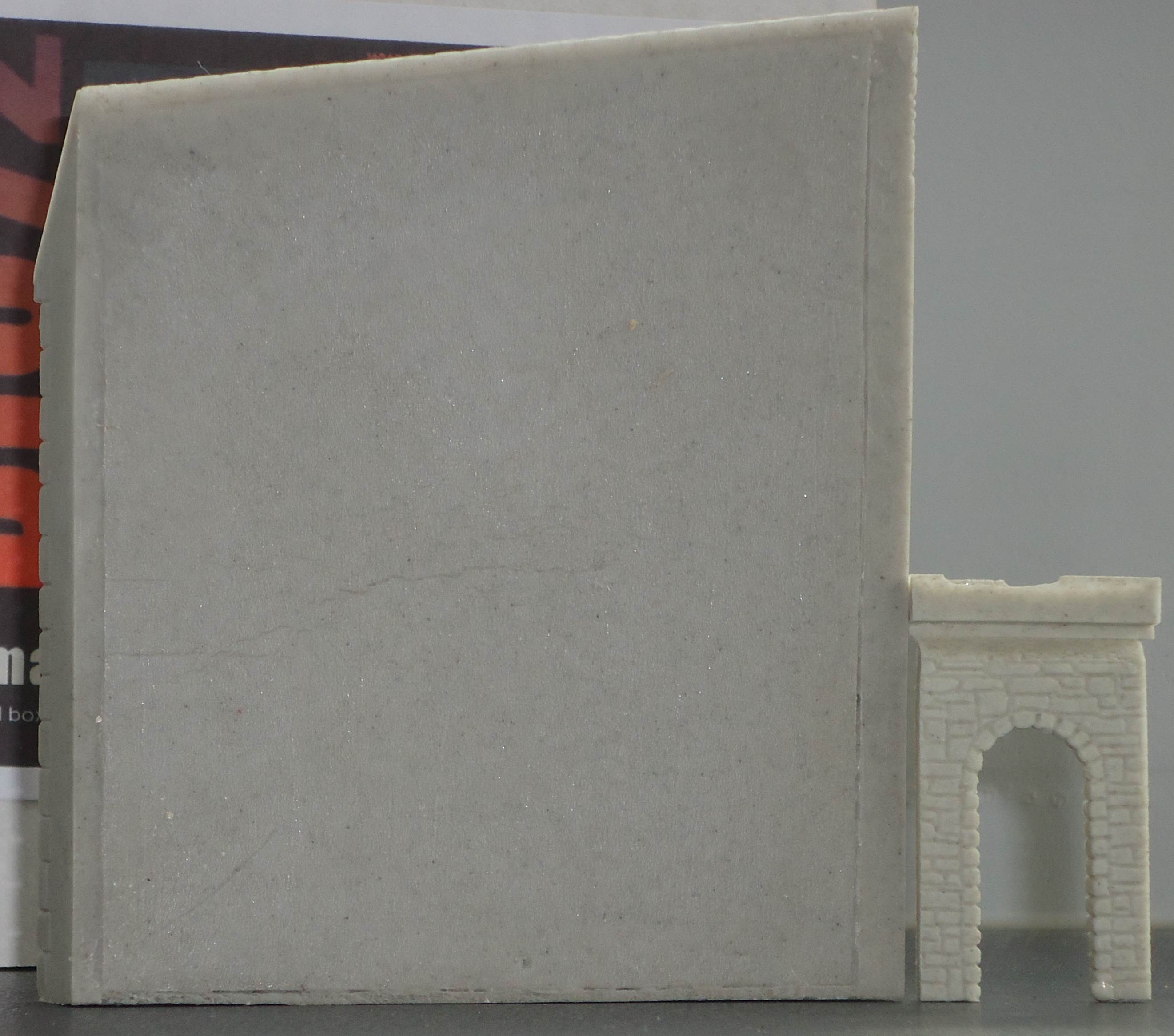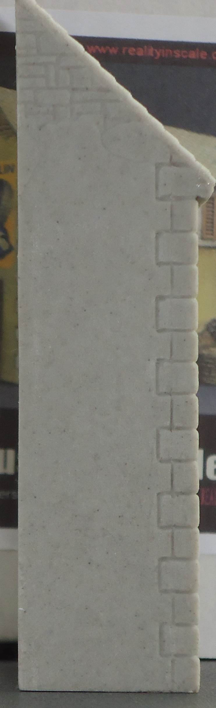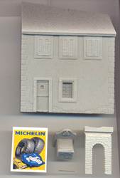 theatres of World War II. The set contains 3 pieces, cast in grey resin, plus a decal poster and a piece of copper tubing, meant to be used for the small fountain. The decal, representing an advertisement for a well-known brand of tyres, will have to be cut in two to fit the wall. This means you can recover the other half for another project. It seems Reality in Scale is using resin casting technology that is state of the art, as - even though the main part is a massive block - no warping is present on the parts, no air bubbles were found (on the backside) and detail is very crisp. Apart from removing a single casting block on the arched gate, there will be no clean-up required whatsoever, meaning that, after priming, painting can start straightaway. The fountain