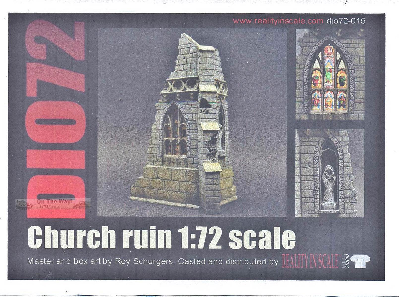 of World War II. The set contains 5 pieces, cast in grey or tan resin, and an acetate sheet for a leadlight window. It seems Reality in Scale is using resin casting technology that is state of the art, as - even though some of the parts are massive blocks - no warping is present on the parts, no air bubbles were found and detail is very crisp. Apart from removing the casting blocks from the windows, there will be no clean-up required whatsoever, meaning that, after priming, assembly and painting can start straightaway. Contrary to other sets from Dio72, all parts in this set have detail on both sides. All in all, a very nice set.