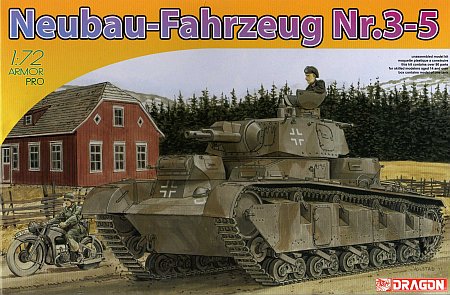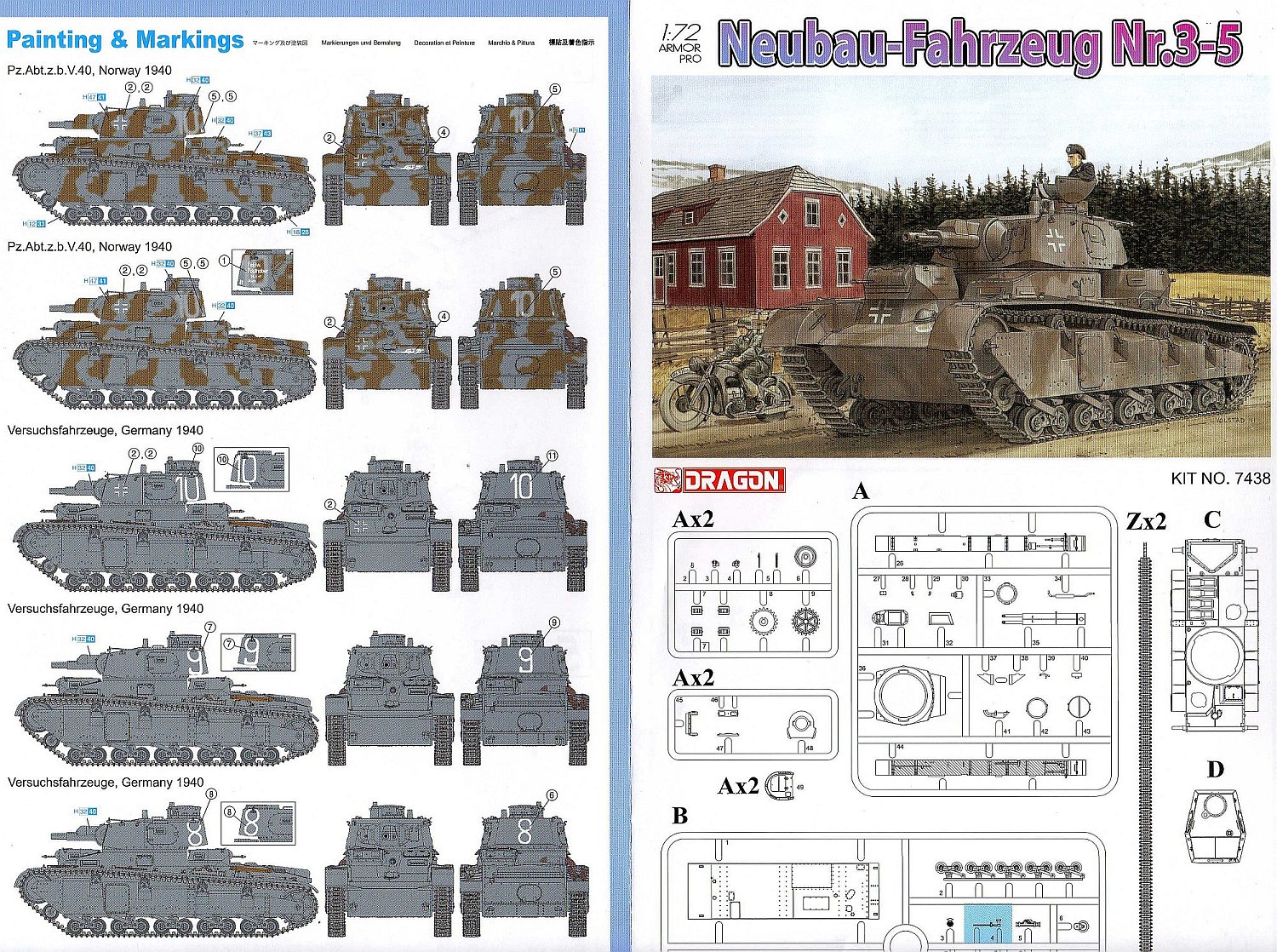 With box art work by Ron Volstad, the Neubau-Fahrzeug NR. 3-5 (kit no. 7438) comes in a larger than normal box and it is taped on all four sides and