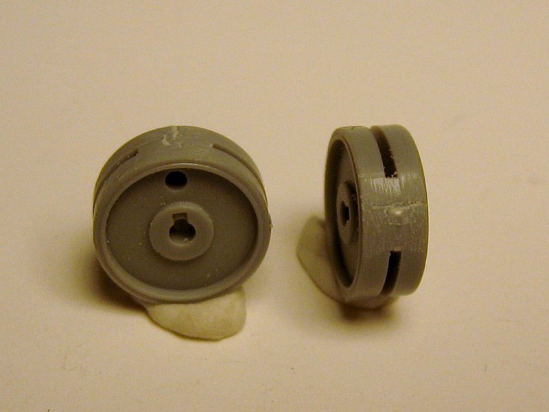 Position both idle wheels so this is hidden by track or hull parts. Make the location of the wheel's drain/lightening hole different from each