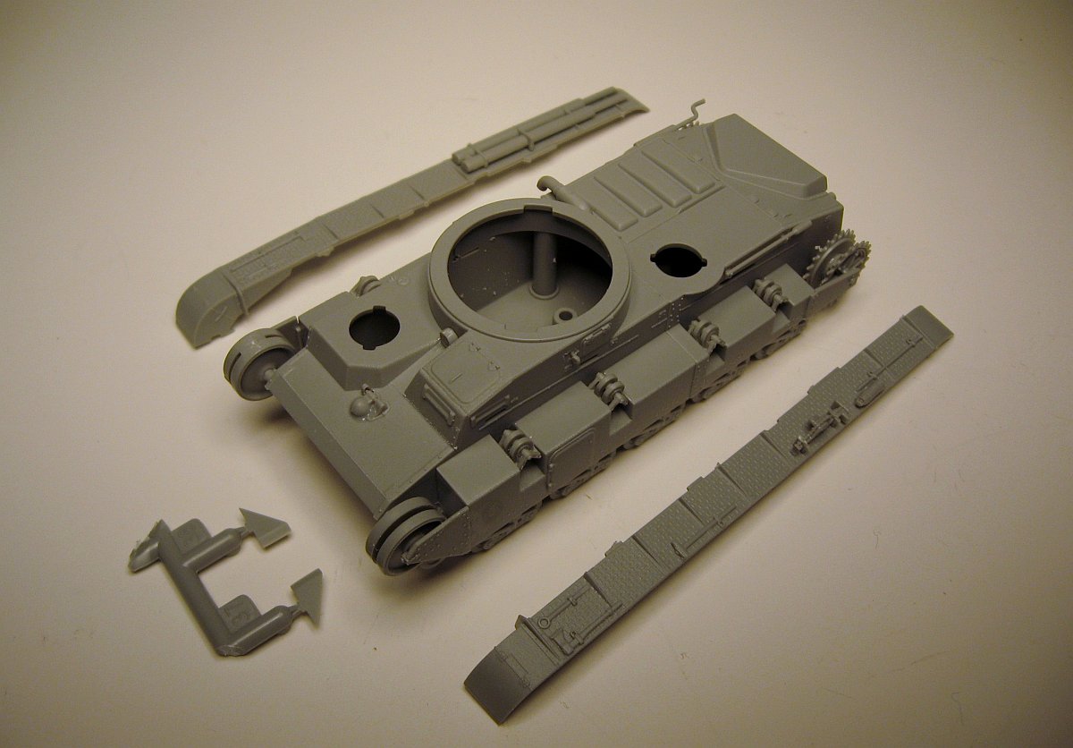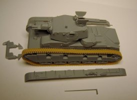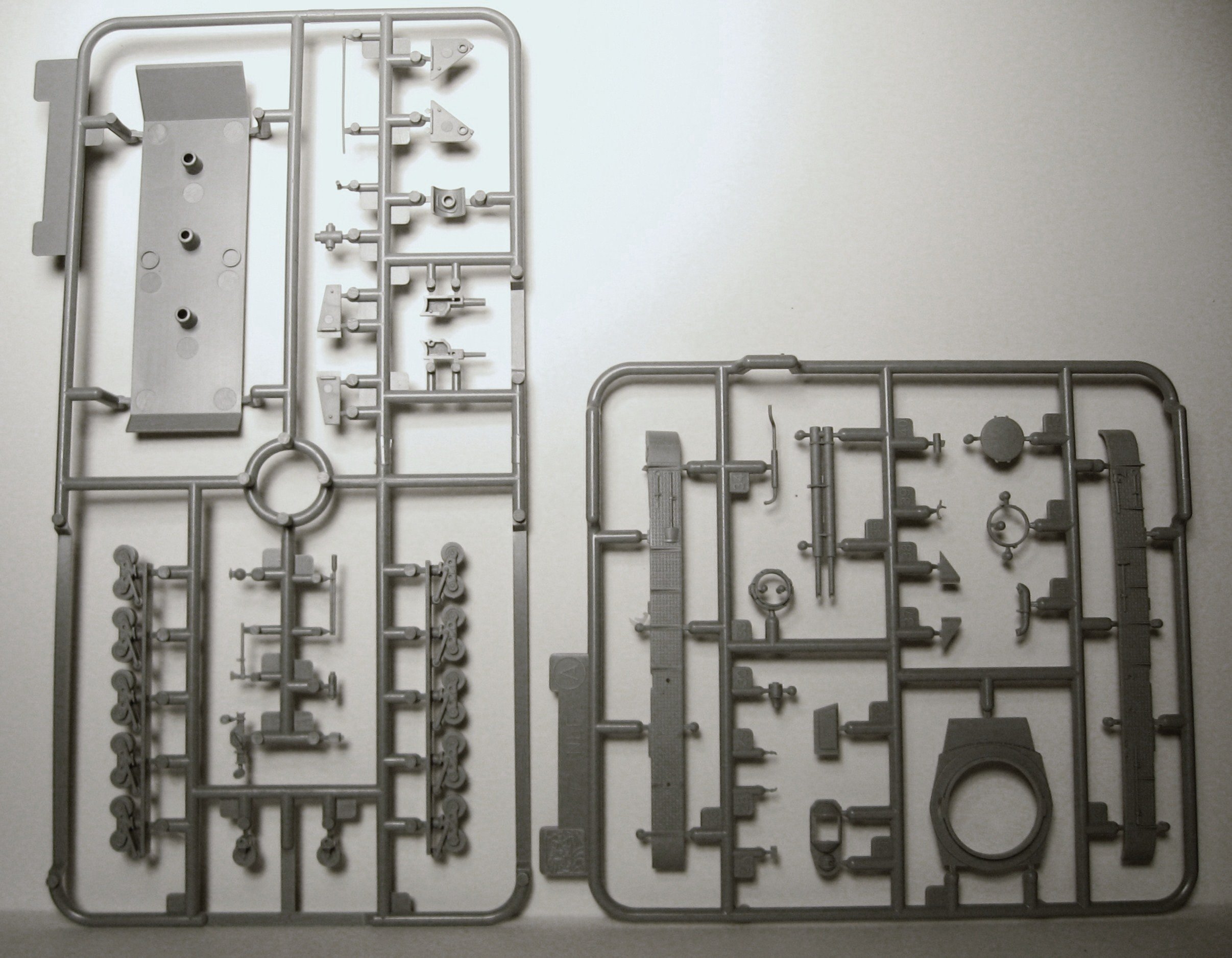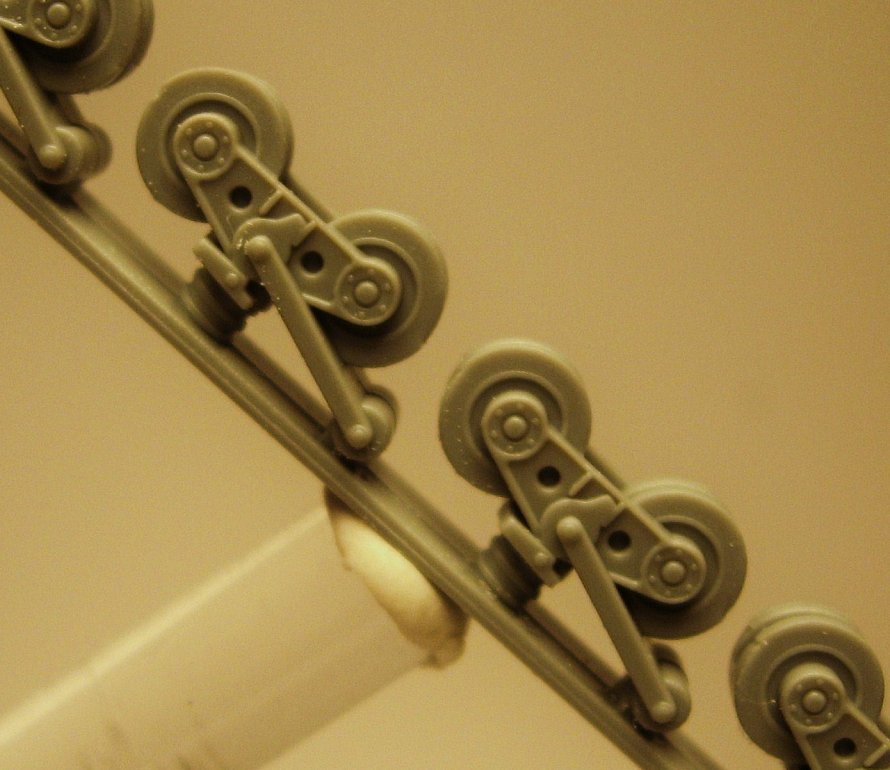 Moving on to the road wheels, we see they are molded in one piece with a separate single road wheel that goes under the front idle wheel.