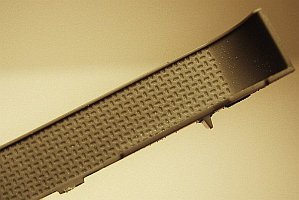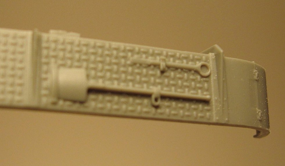 Beautifully rendered tread plate is let down by molded on tools that have finely molded hold down buckles,