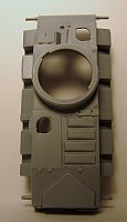 In this step the main turret is constructed. I mounted the turret ring to the top turret half and began the assembly of the twin main gun mount. The