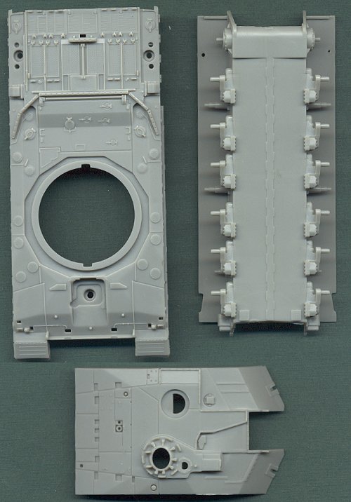The tracks are very soft and flexible, and nicely detailed. Since they will be almost entirely hidden behind the side armor, I think they should look perfectly adequate, assuming that the individual links don't bend in half as they are wrapped around the sprocket and idler wheels.