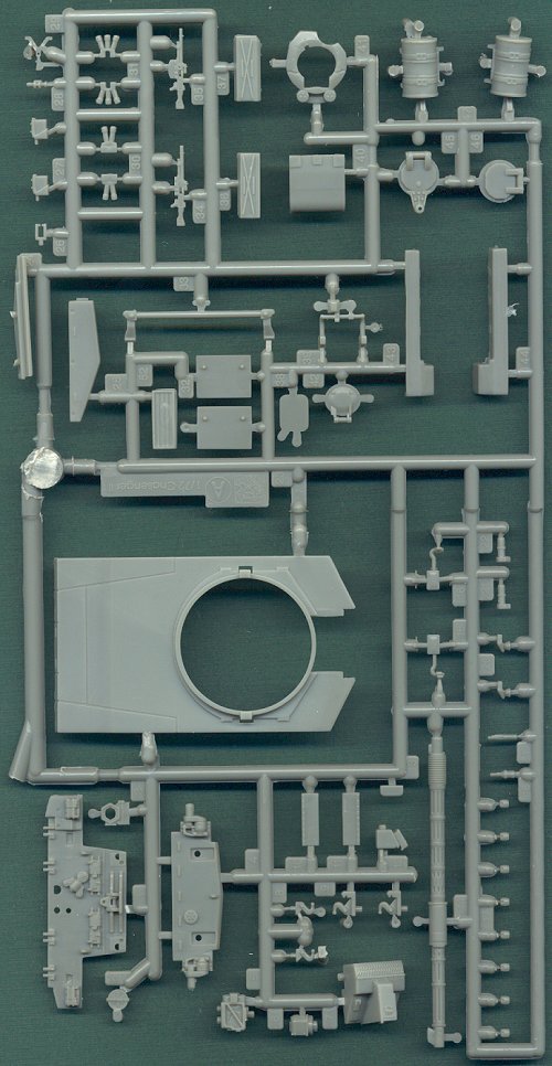 ![]() I previously vowed to not buy another Dragon kit until they showed a marked improvement in quality. They have now done so. (Note: The correct designation for this tank is Challenger 2, not Challenger II.) I bought this kit with the intention of building and painting it in a European scheme, not realizing at the time that Dragon has future plans to issue a kit of the KFOR version of the Challenger 2. If I am correct, the only difference between the two kits will be the markings, and the KFOR kit will likely not include the sprue of parts for the add-on armor shown below (although this is just a guess at this time). Thankfully, this is an entirely plastic kit, with no cast metal parts. As with Dragon's other kits, the lower hull is molded as a single piece with completely detailed hull sides and chassis parts incorporated onto the hull. The main hull piece is also very nicely detailed, with the side armor molded onto the hull sides as well. One of the few criticisms I have of this kit is that the side armor is not provided as separate parts. Everything is abundantly detailed, including the wheels. The driver's hatch is open, but there is some plastic that will need to be removed inside the open hatch, as this was the location for a screw on the die-cast version of this model. Although it appears in these scans that the two turret hatches are open, they are in fact, not. The hatches are provided molded together with the machinegun mounts and rails, and they cannot be posed open without major surgery. The sprue above shows the add-on armor. I think that this sprue will be lacking in the forthcoming KFOR version of this kit, since this armor was not mounted on vehicles stationed in Kosovo. However, that's not to say that it could not have been mounted, if needed. This armor was intended to be mounted in combat conditions, and in fact, it was mounted on Challenger 1 tanks that served in Kosovo before the Challenger 2s. So it is probable that the armor was in storage in theater, available to be mounted on the Challenger 2s if needed. (This is speculation on my part, and if someone knows anything concrete about this, I'd like to hear it.) So . . . if Dragon releases a KFOR version of this model without the add-on armor, then the modeler will be best served to buy this Iraq kit, and procure after market decals instead, because the inclusion of the add-on armor will give more building options, in particular, for hypothetical combat situations.