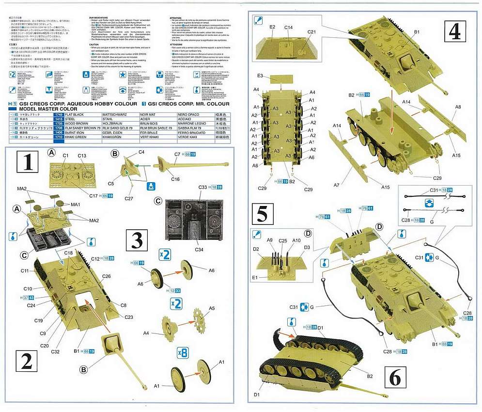 (B2) parts, wheels with schurzen and exhausts (A) and three “zimmerited”