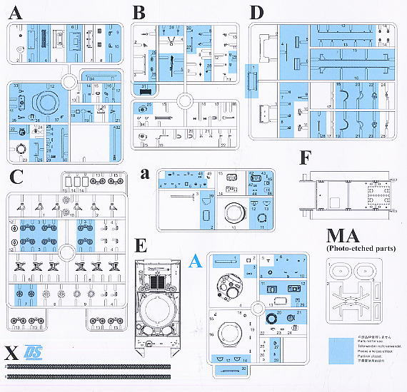 parts of sprue D, and a lot of sprues A and B are blued-out, amongst