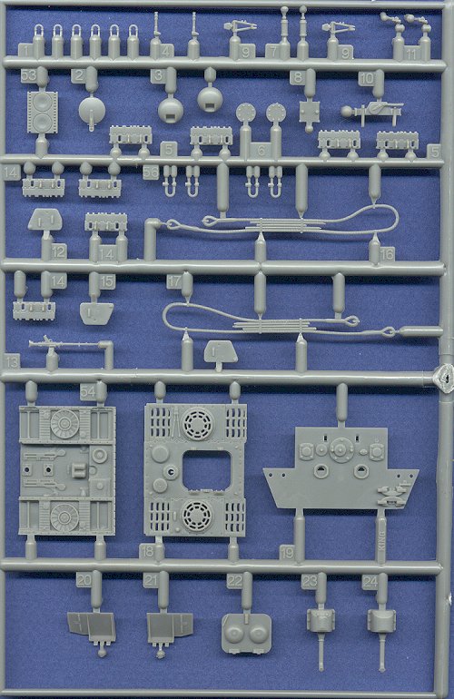 How does this kit compare with the other two King Tigers on the market? I think it beats the Italeri kit, and it is neck and neck with the Revell kit. It has a couple of advantages over the Revell kit (they are almost identical in shape and size, with this Dragon kit being just a hair longer than the Revell), but for me the important deciding factor is the tracks. For those of you who like vinyl tracks, you should love this kit. |