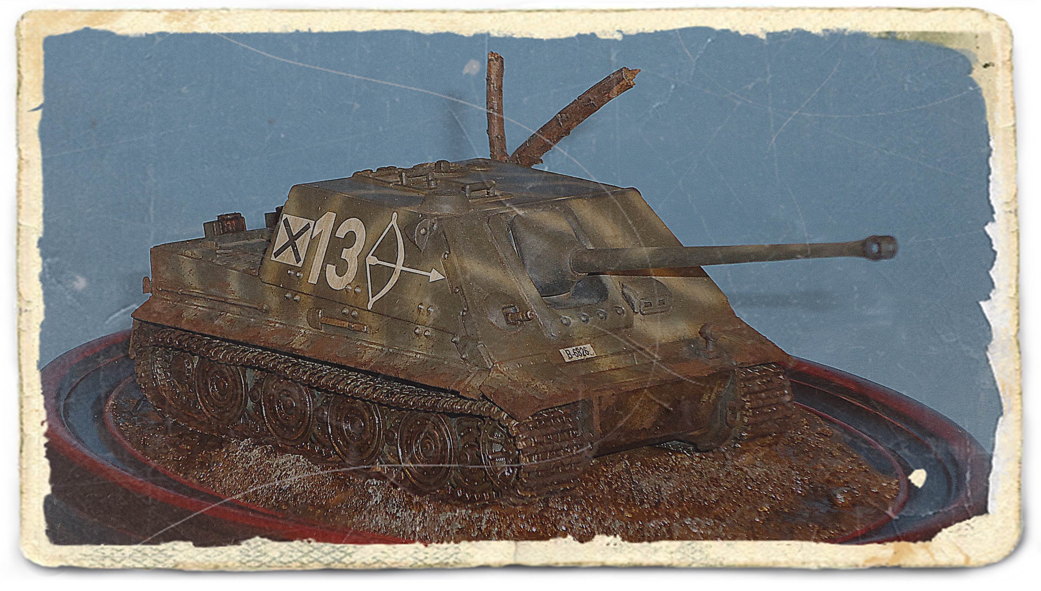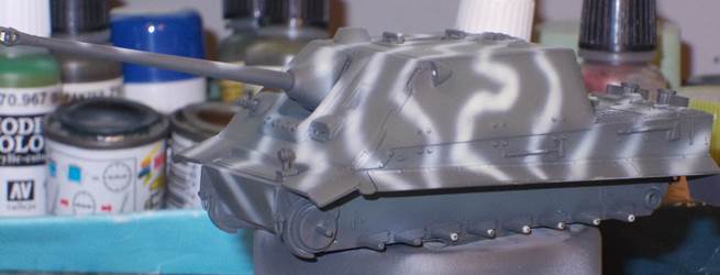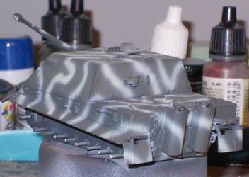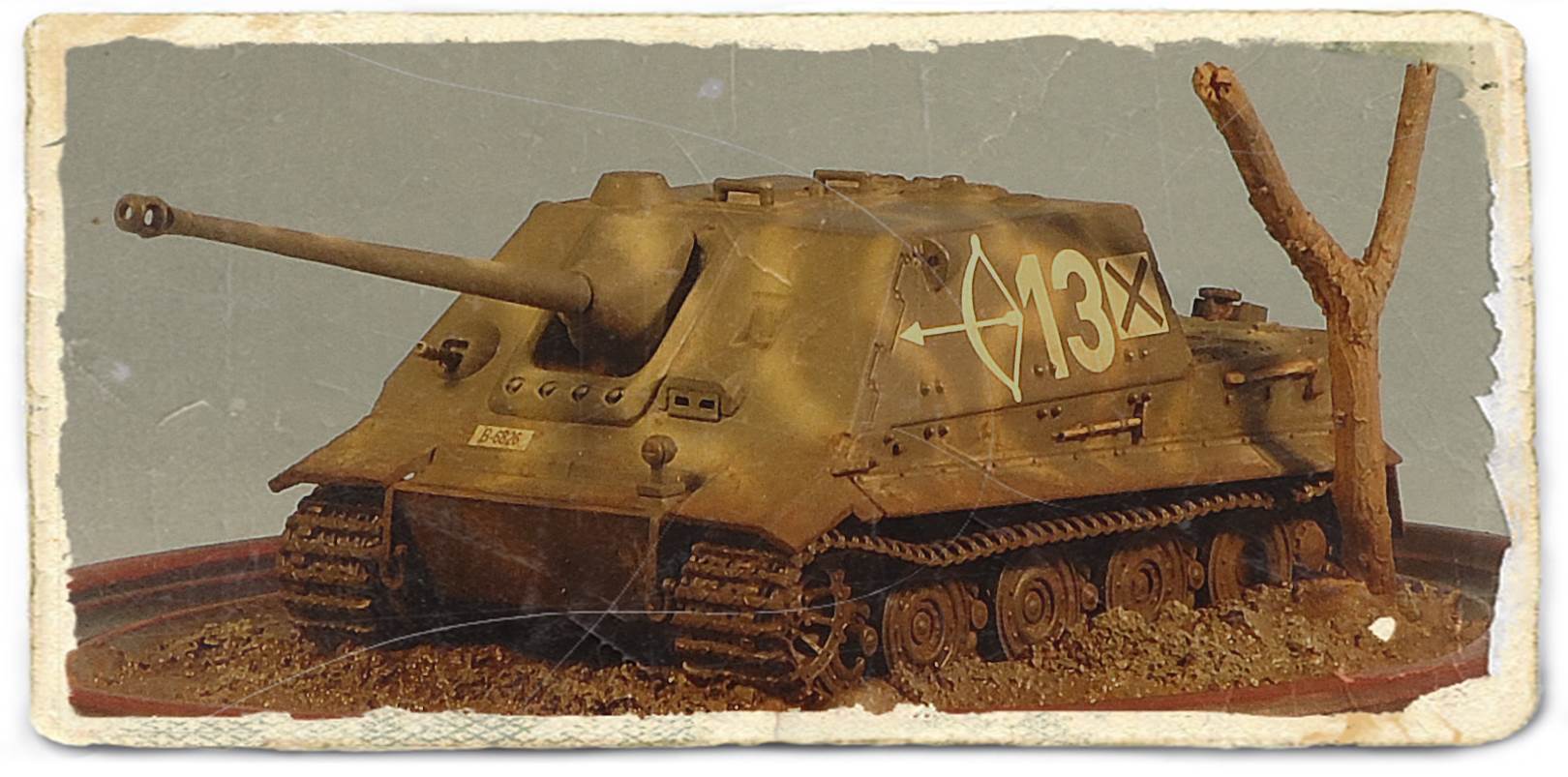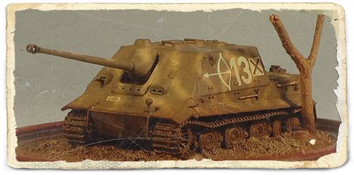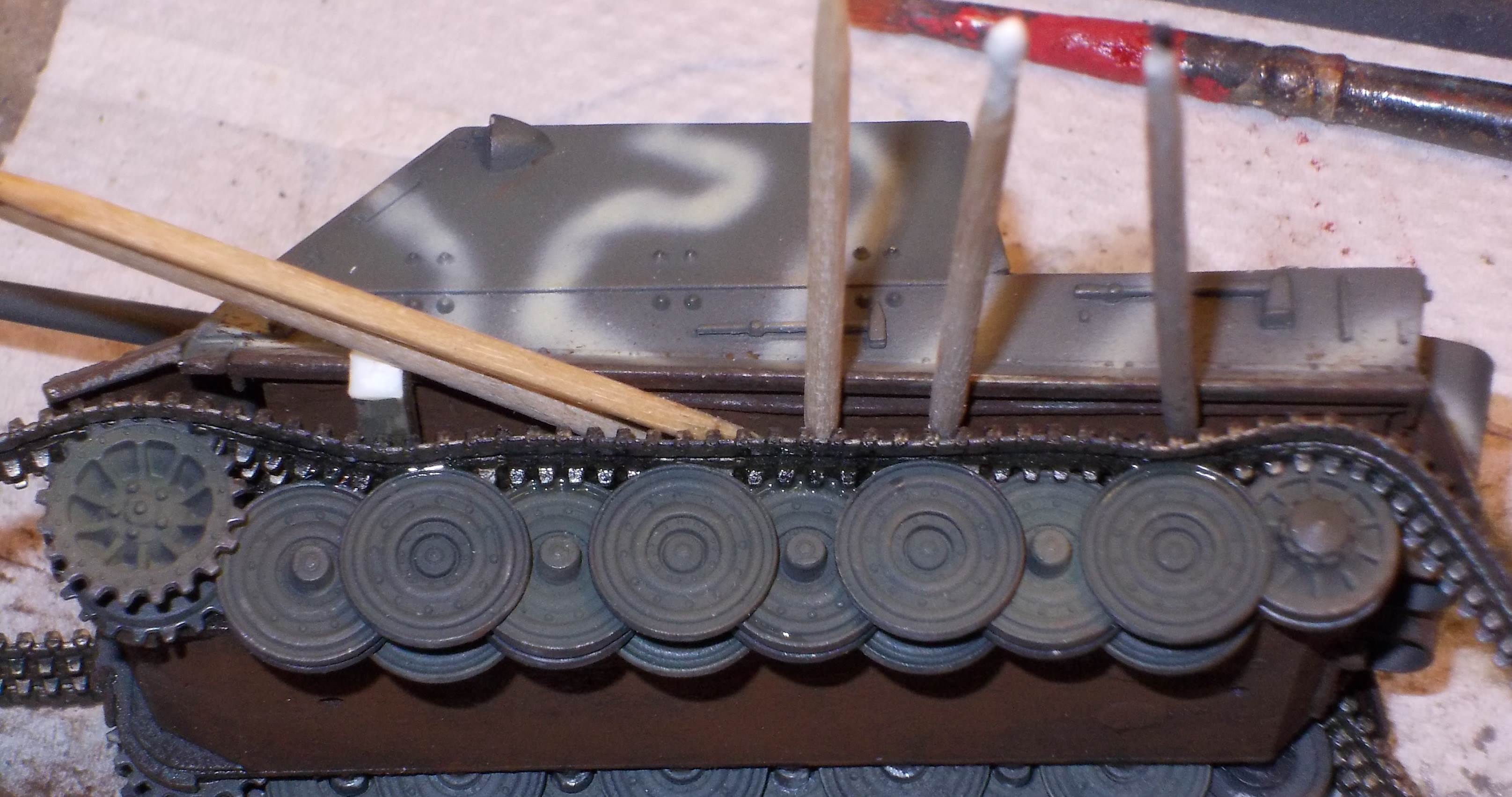 tracks over it. In general, fit is not really bad, but some filler should be kept at the ready. There is only one marking option, and this is limited to three Balkenkreuze and markings for the projectile. While these clearly are markings to instruct the user to keep the projectile dry, Dragon still has not vollständig mastered the German language, and some typos are clearly visible. As you can notice in the pictures below, I didn't quite stick to the manual, and let my imagination run wild. The gun mount is one of the spare parts that come with most of Dragon's early Panthers and Jagdpanthers, while the decals are from various sources: