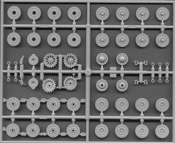 There are a couple other unique items included: the pressed brass exhaust guards, which are fairly decent, and some braided wire for use as tow cables. The wheels and tracks are the same as included in their previous Sturmtiger kit, and although I like the steel road wheels very much, the sprockets are very poor. I also dislike the tracks immensly, but they do have a nice tread pattern on them.