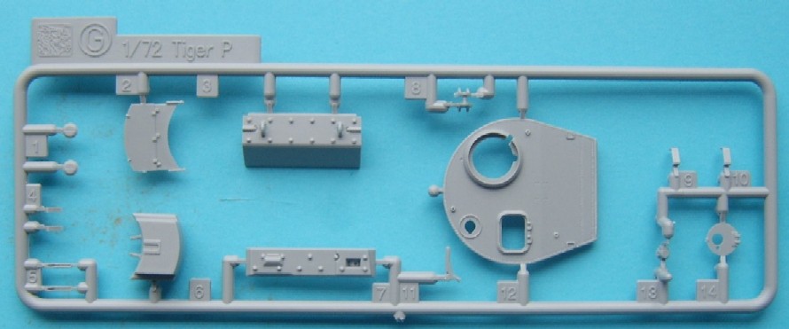Dragon have finally released the Porsche Tiger I although instead of making the pre-production Tigers, they have chosen a specific vehicle that served on the Eastern front namely Fgst Nr. 150013. Incorrectly labeled and boxed as a Panzerkampfwagen, according to my references it should be a Panzerbefehlswagen. There was some debate about this particular vehicle having zimmerit, which is not depicted in the kit and because of the moulded on tools and tow ropes, would be difficult to replicate without first removing the items. However that said I am now not sure whether the Zimmerit was applied in the field or not and that the vehicle was for a while without zimmerit? the basis of this is just one photo, where it is difficult to see the Zimmerit if it is present or not. It could be that the picture quality just doesn't show the Zimmerit, as according to other photos it was a very faint pattern a can be seen below. Anyway to the kit. The kit shares a few parts with the Elefant Armour Pro kit 7253, the running gear and tracks coming from this kit, the surprise is that it also includes parts from the Bergpanzer Tiger(P) mainly the crane and some hull fittings. The kit also includes the Tiger Turret sprue from that kit, which has the incorrect symmetrical turret plus two mantlets for the main gun an early and late pattern and the tiger stowage bin and other various fittings. The good news is that although the kit has the old Tiger turret [Ed. note: it's not the oldest Tiger turret from Dragon, but it is indeed older than this kit.], it does include a new turret roof on a different sprue which is the correct asymmetrical shape, and although the turret sides are not entirely correct these should be easier to correct than the incorrect roof. This is the incorrect roof, as you can see it is symmetrical. This is the correct roof, as you can see there is a small gap at the front caused by the new shape, which can be easily glued. To the Sprues