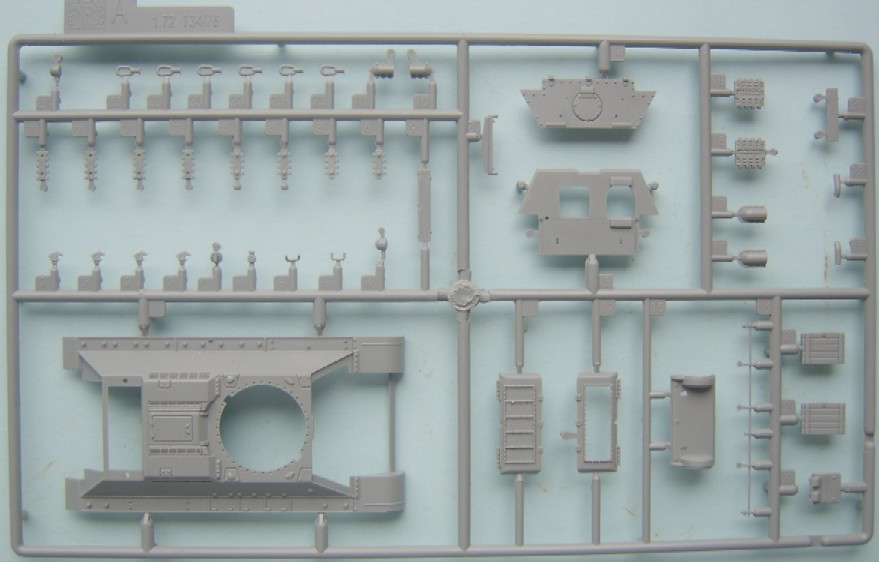 Yet another T-34 release and I am sure that it won't be the last (not counting the SU-85/100 SP guns) this time it is labeled as the cast turret, which is somewhat mis-leading as it is not the cast turret version but a so called formed version or even known as a "pressed" turret or a Stamped turret. Despite it being wrongly labeled it is infact a good representation of the formed turret. The kit breaks down in the now familiar way, with the exception of the wheel choice. The basic vehicle is the same as in most of the other Dragon kits with the exception that the rear access plate is moulded shut. The turret comes on a seperate sprue and includes the hand holds The turret interion is the same as the other T-34 Mod 42/43 hexagonal turret releases and even includes the roof from the German Beute panzer version although regretfully not the cupola to go with it. The wheels selection has been kept to a minimum with just the perforated rubber dished version being in the box although it was usual to see these vehicles with other variations in wheels. for those that have the full T-34 range this shouldn't pose too much of a problem as with careful planning it is possible to get other wheels from the other kits. The tracks are the standard Waffle pattern made out of the "famous" DS plastic. Personally I feel that the tracks are the weak point in these kits, not so much because they are one piece but because they are to my mind slightly too thick. The PE is the standard fret seen in the later T-34 releases and has a good balance of parts that will enhance the kit without going over the top with it. Markings are provided for 5 vehicles, although this time they are missing the obligatory beute version. the decals are thin and in register.