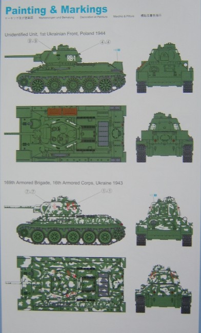 | Finally after the wrongly labeled T-34/76 mod.43 Beute have dragon released the proper kit, the Mod 43 being distinctive by the addition of the commanders cupola to the turret. The kit is the same as the original Mod.42 but with the corrected hull. The only new sprue is for the cupola itself and that the wheel selection is different, included are only 6 steel wheels 4 spider and the rest being the normal perforated rubber solid dish wheels. The break down of the kit is the same as the other T-34 kits, or better said the Mod.42 and Beute kits as the rear access panel is moulded shut.Again the option is there for either the PE engine mesh or the plastic is there, at least the option of having it in the kit is better than the option of purchasing an aftermarket item that unless it is for the specific kit won't fit. The turret is basically the same as on the Mod.42 and the Beute, with the exception of having a new roof for the commander cuploa and the 2 periscope sights The internal turret sprue is the same and contains the gun breach and outsid hand holds. As already mentioned the whhel selection differs from the Mod.42 with the inclusion of the Dished wheels and not so many steel, however there is enough to make the kit and some spare depending on which vehicle you want to model. The tracks are the standard waffle type, it is interesting to note that Dragon must have various moulds for the tracks as they come in a variety of lengths depending on which kit you buy, which is odd as all the kits have the same distance around the wheels, the lengths vary from between a little tight to too much slack where links have to be removed. The PE provided in the Dragon kits is some of the best I have seen, not only is it thin and in scale, but it is also not over done and all parts are usefull so that the fret is not full of gimmicks that are never used, of course it is up to the individual as to how much PE he/she wants to add, as the kit can be built without. Markings are provided for 4 vehicles of which one is the now obligatory "beute Panzer " The decals are well printed ans suitably thin and should set down well. References used Russian T-34 battletank by Horst Schiebert Schiffer publications T-34 in action By Steven Zaloga and James Grandsen Squadron/Signal Publications T-34/76 1941-1945 by Steven Zaloga And Peter Sarson Osprey New Vanguard NVG009 Unknown T-34 Russian Publication so I can't understand a word but great drawings and pictures Tankomaster Hull Drawings M-Hobby Hull and Turret drawings Plus Various other russian Publications that when I find out what they are called in English I will add to the list |