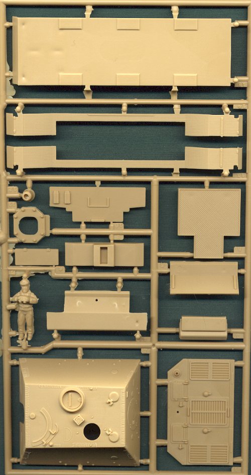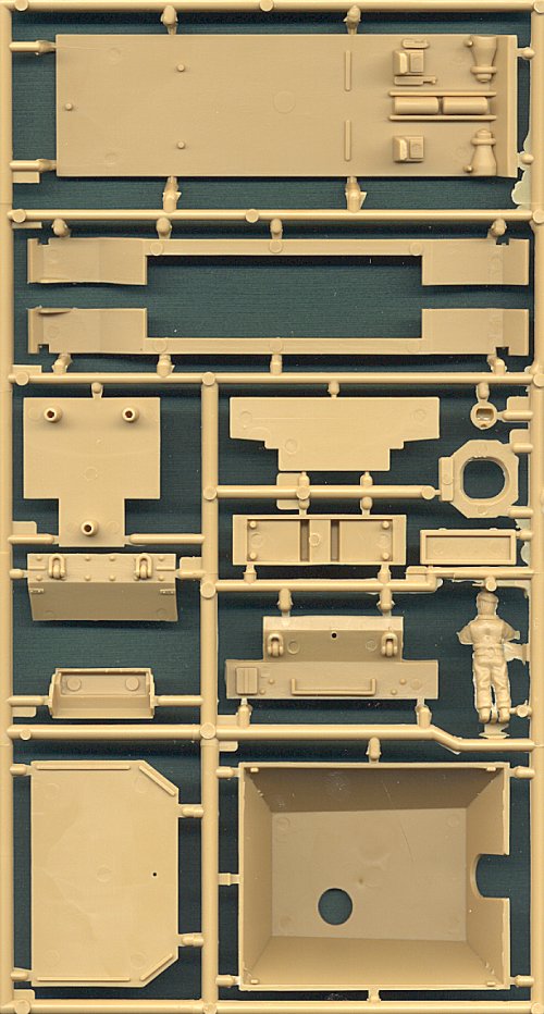 I recall my best friend back in grade school building this model with a completely tricked-out interior and removeable superstructure. Of course, it was completely fictitious, after all we were only in sixth or seventh grade, and using references to make models never entered into our young minds. But regardless, this model left an indelible impression on me, and I will always look fondly upon it, despite its competition. I have not yet seen the new kits by Dragon and Trumpeter, but this ESCI kit is actually quite nice (with a few notable exceptions). The surface detail in the hull and superstructure is very well done, and accurate. The commander's hatch is molded open, but unfortunately none of the others are likewise. A partial interior is included, with a floor, gun breech, ammo storage, and radios, but much more will need to be added to make it truly shine. Some other hatches will also need opening to show it off (unless you want to keep the superstructure removable). A figure is included, but he is marginal at best.