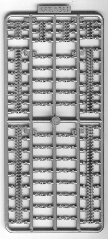 The very good hard plastic tracks from the kit represent the early type Valentine tracks, somehow appropriate for an early Mk.II vehicle, but I don't know if they were used on Bishops - my reference photos are from Italy or later and show only late style tracks, however the tracks were probably exchanged during the war - I guess there were vehicles with early type tracks in Africa.