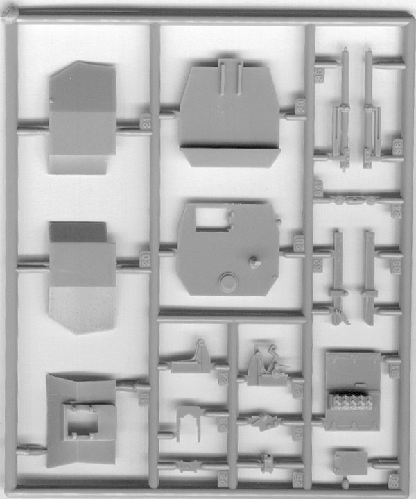 The new "turret" is nice too, with open hatch, and good gun detail - unfortunately, the big doors at the back of the "turret" are molded as shut. There are no figures included, and I would recommend getting an additional ESCI 25 pdr. kit for these and for the ammo trailer.