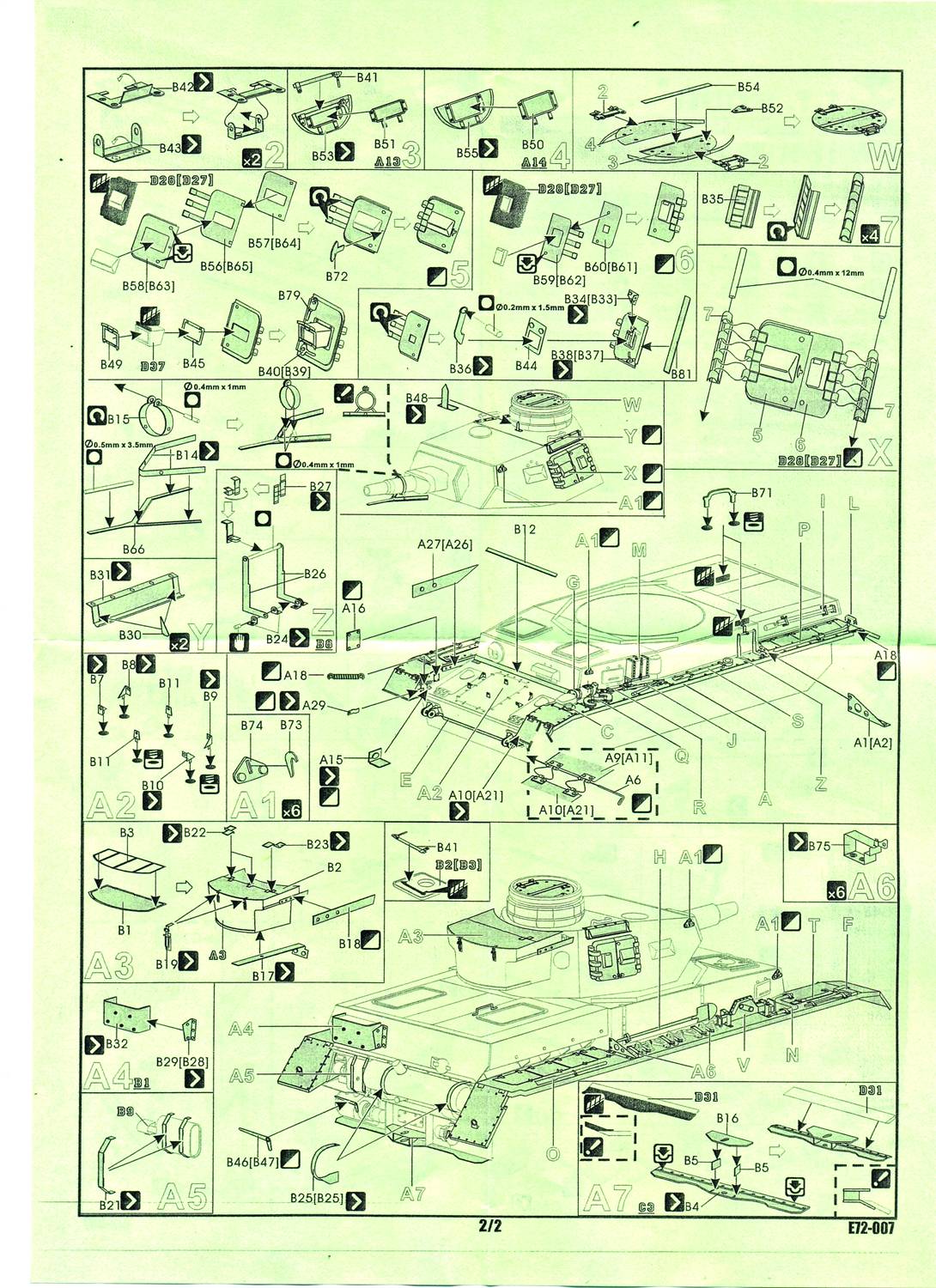 The set comes with a very extensive and clear A4 instruction sheet. I have the impression that some parts are not mentioned on the manual. There are parts for what looks like an MG34 (which would again be a 2D replica of a round-barreled gun), an ammo belt, two sizes of C-hooks, etc. In all, a mixed bag: this set represents the cutting edge in PE detail, but it would take a really talented modeler to put all the parts to good use; other parts are within reach of mediocre modelers like myself while some would be too flat to be a good representation. Whom the cap fits,... |