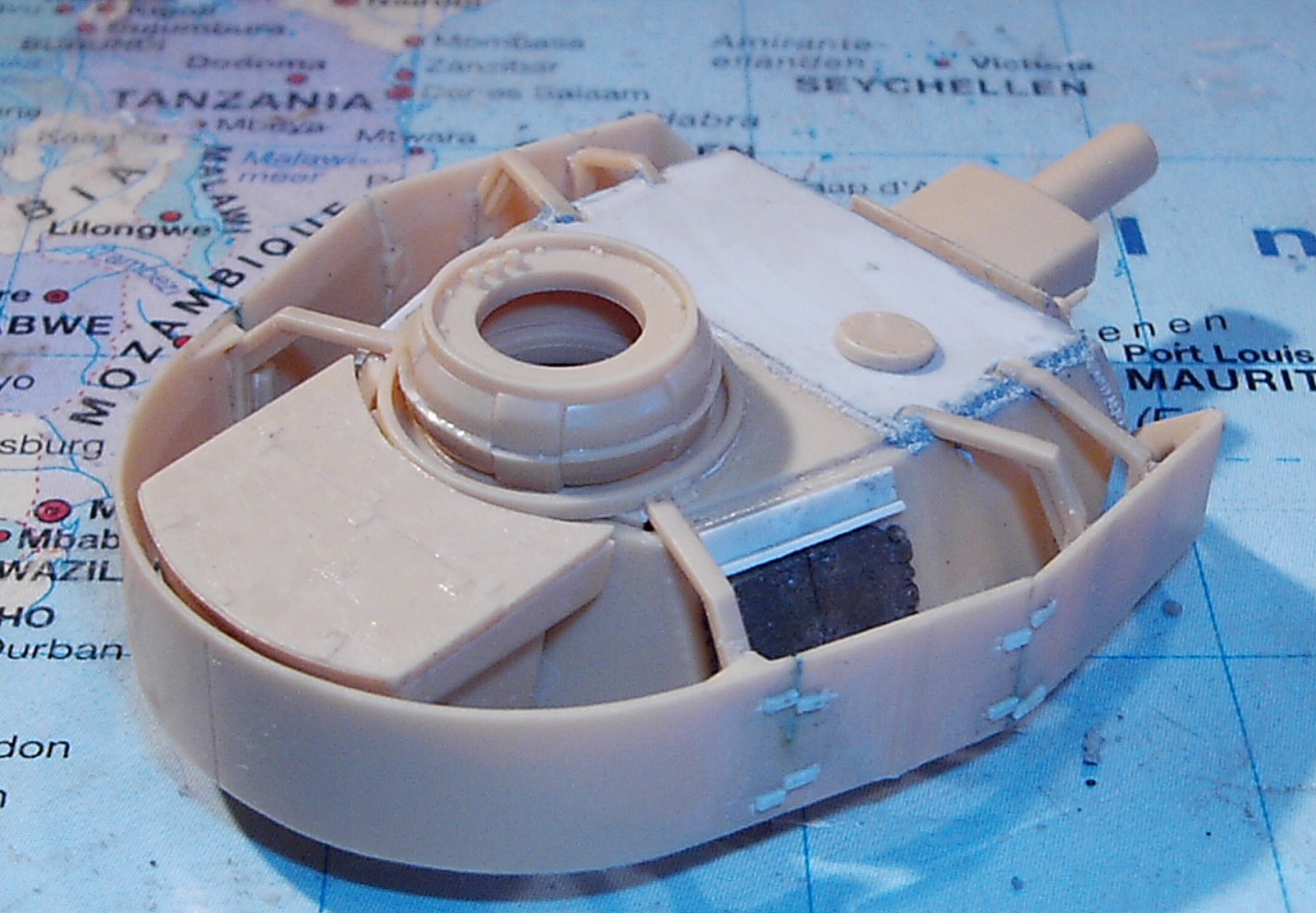 fitted surprisingly well. Zimmerit was then added using Vallejo acrylic putty, which helped me to hide the joints between the Revell and Euromodel parts.