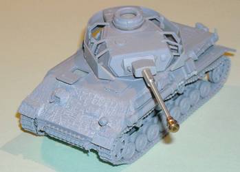 2. Packaging Sturdy top opening cardboard box. 3. Type of kit Multi-piece resin. The hull and turret are clearly based on that of the Revell kit but with a major facelift of the hull. All hatches of the hull and turret are closed. The turret looks like your regular Pz IV turret, except for the lack of a Rommelkiste on the back, which I find surprising. The running gear is nicely done and