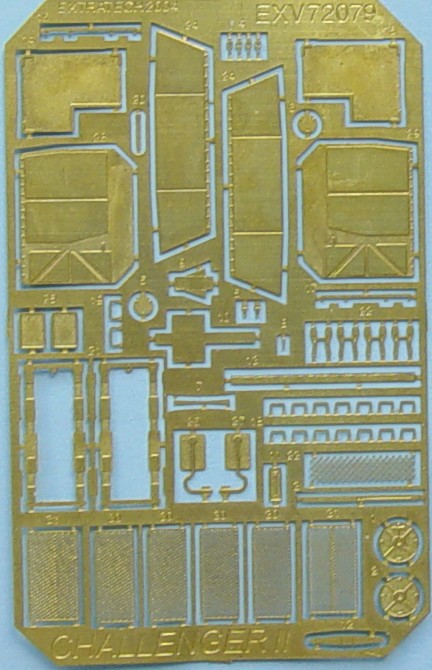 This set is designed for the Dragon Challenger 2 kit and covers most of the parts needed to enhance the Dragon Kit. Included are the mesh screens that cover the front set of engine louvers, plus all of the handles needed on the engine deck. The set has the correct front and rear dust guards, fitted over the mud guards to suppress the amount of dust thrown up, these are only applicable to the OIF version, along with the Thermal recognition panels for the front of the turret. All the other parts can be used for any Challenger 2 version.
