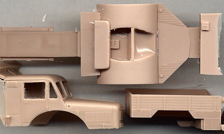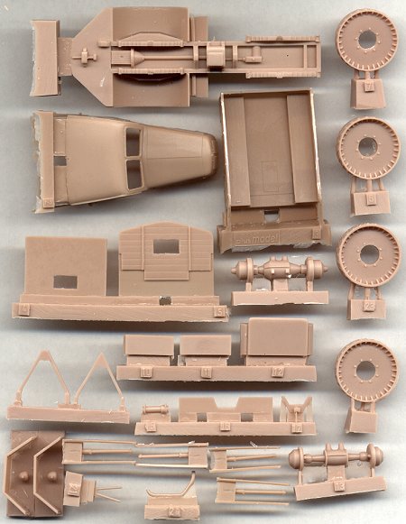 The resin casting is top-notch, with only a couple of tiny airbubbles that need filling. The cab is closed, so if you want open doors, some surgery will be required. Nice treadplate pattern on the floorboards. Most of the cab interior is detailed with etched brass parts, but if you open the doors, be prepared to add a little more detail, such as aging the seats, etc. Clear parts are provided for all the windows.