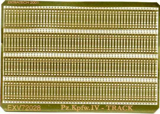 I hope that ExtraTECH is setting a trend with this release. There are many styles of track which may not lend themselves to reproduction in etched brass, but like the Pz IV track, there are many that do. These tracks are extremely well-etched, and will be very easy to fold. No, I have not tried to use these yet, but based on my experience with other etched track (ExtraTECH Cromwell), I think that these will look beautiful when used. I had planned on sacrificing a Revell Pz IV kit for every Hasegawa Pz IV kit I wanted to build (including the Ostwind and Wirbelwind), just so I could use the nice tracks, but now I won't have to. I only ordered one of these sets as a trial; now I need to order a dozen more before they're out of stock. (They will also make great spare track links for attaching to tank hulls.)