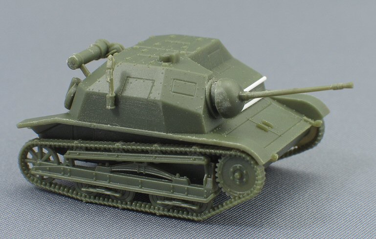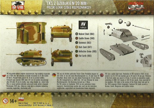 What's in the box? This kit has been designed as a quick build of a small tankette (I know tankette already means "little tank", but the TKS is really, really small ?). This means things are sometimes simplified, like major subassemblies being cast in one piece. This results in an extreme low number of parts : there is only one sprue (which is, strange enough, labelled B; where has sprue A gone?) containing no more than 12 parts. However, these are nicely moulded with sharp definition. This may be a quick build, but it is no short run kit. No