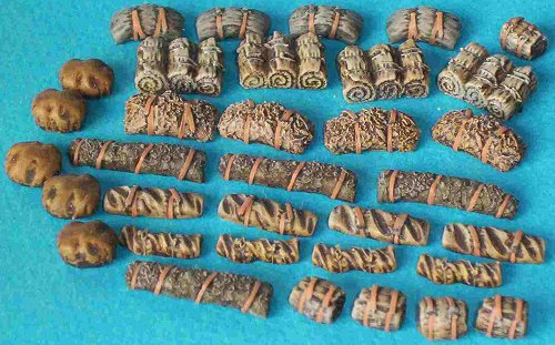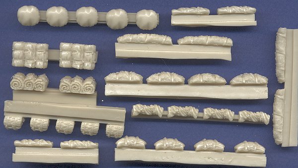 Another set of rolled tents or other soft stowage. As typical with Goffy, the masters are, well, masterfully done, with excellent casting quality. There are no air bubbles or other problems marring these items. There eight different types of rolled items here, which can serve as tents, tarps, bedrolls, camouflage netting, etc.