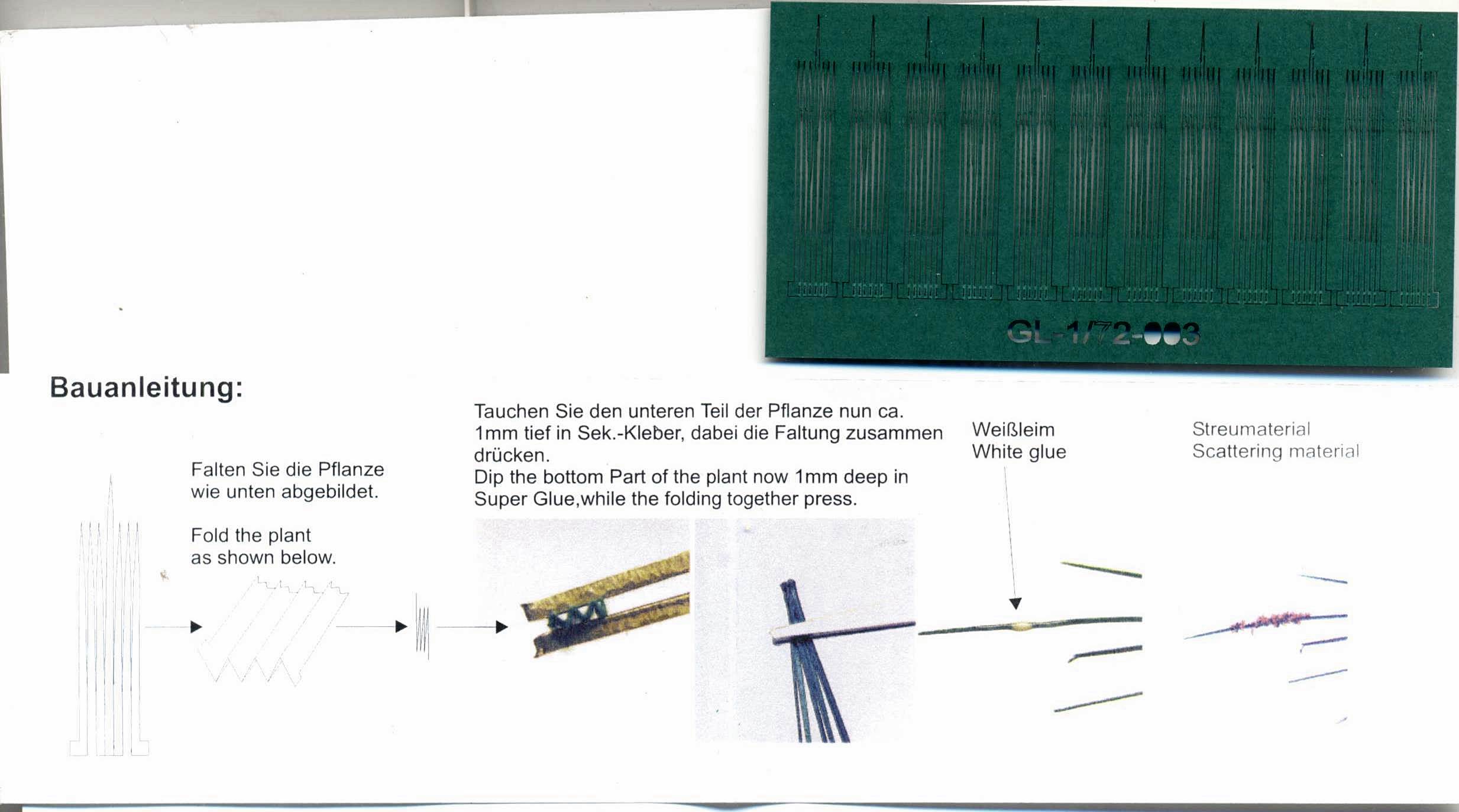 | What we have here are three sets of laser printed paper, meant to represent common plants or plant leaves. The only other renditions I have seen of this sort of diorama item are in PE. Not only is the paper far cheaper, I believe it can be made to look more realistic as well.