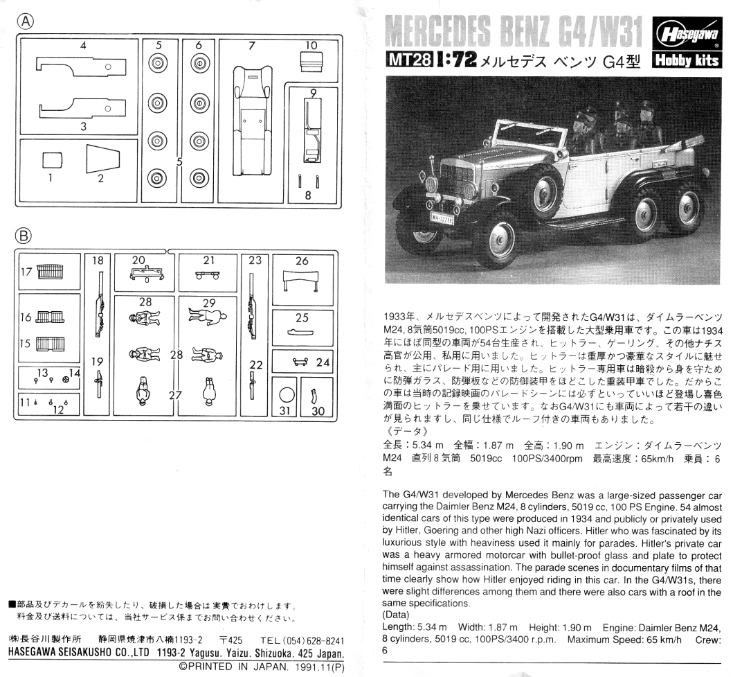 of the G4/W31 show a step built into the rear fenders which this kit lacks as it was modelled after one of Adolf Hitler's cars. I'm not sure why some of the cars had