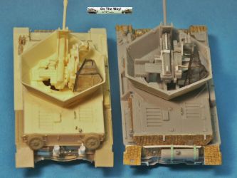 Above we have a comparison of the gray Hasegawa turret parts at left,