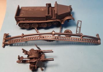 anti-aircraft gun and mount. The sprue at right is common to kits