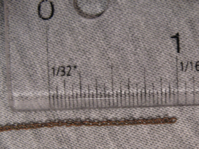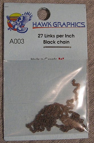 I discovered this product at the 2015 IPMS USA Nationals. Although it is ostensibly titled "27 Links per Inch Black Chain", in reality the chain links are more of a rust colour than black, thus making them perfectly suited for armour pretty much straight from the package. No fiddling with chemicals or paint to get that nice rusty look. As can be seen in the photograph below the 27 links per inch is approximate - I counted 28 and one half links in the first inch (making the links just under 1mm each or approximately 72mm or 3 scale inches long). Total length of the chain is 11.75 inches (just short of 30cm).