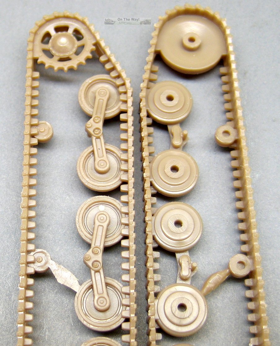 The track is the current simple kit style, wheels and track molded together, but with an important difference. HobbyBoss has molded the track teeth on one side only,