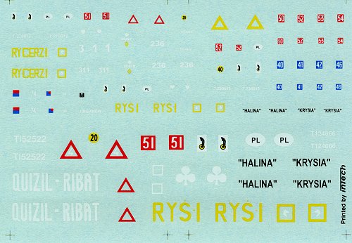 The decals are printed very thin, and with sharp and vivid colors. Overall the registration is very good. There are several choices here, and with the help of some additional reference material (and a complete set of decals), these should allow you to build almost any Polish vehicle during WW II. |